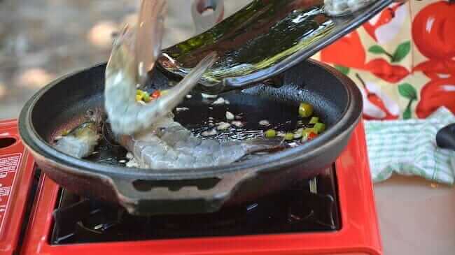 Generally, if we cook with shrimp, we’d put the shrimp or prawns in last. But in this recipe, we chose to put the shrimp in first because we want the garlic to soak inside the shrimp throughout the whole cook time.